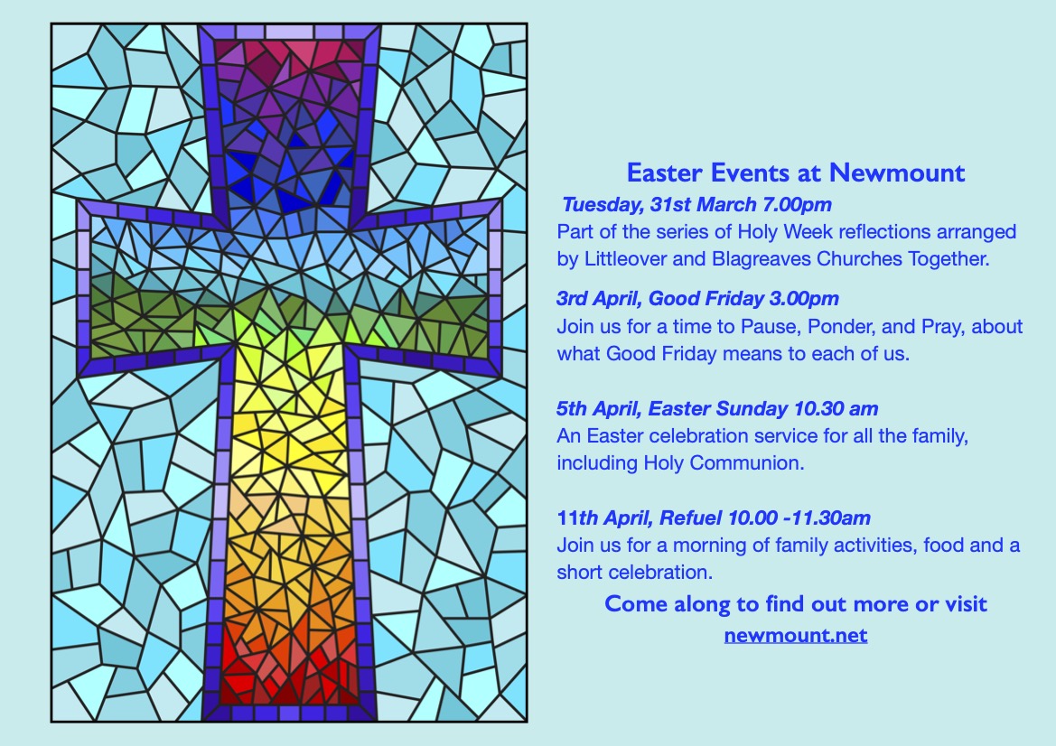Heavenly Father we pray for ourselves and our own fellowship, that you would give us a vision for the future, that you would show us what part you want us to play in our local community. We often feel so insignificant, but we know that you call each of us to play our part, and we pray that through the Holy Spirit we may be given confidence and the opportunities to share the good news that Easter brings.